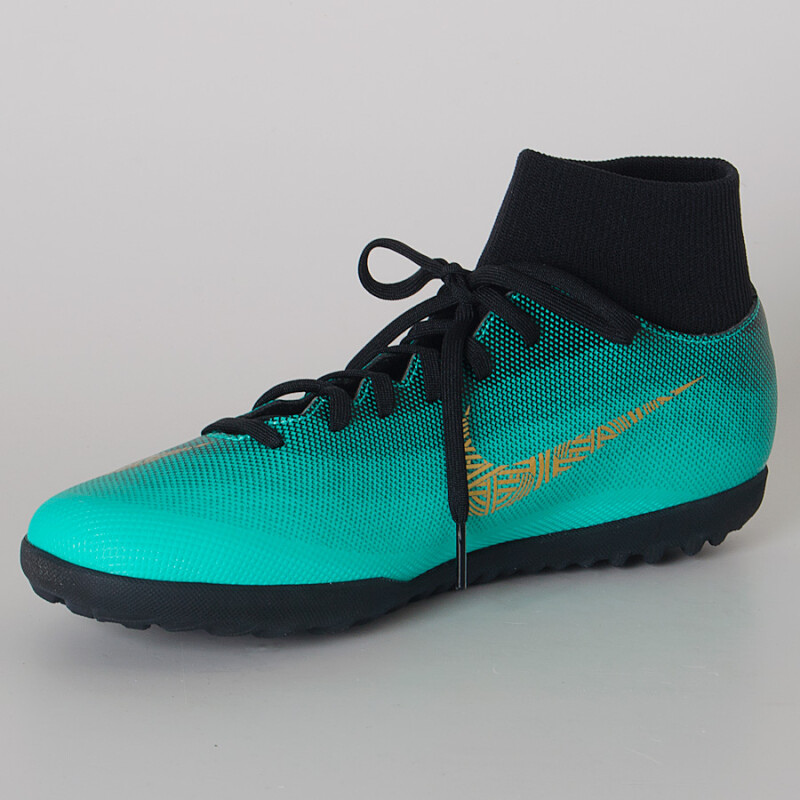 A Chuteira Society Nike CR7 MercurialX Superfly 6 Club TF proporciona excelente toque de bola e um ajuste confortável e seguro que promove a aceleração e permite rápida mudança de direção em campo.