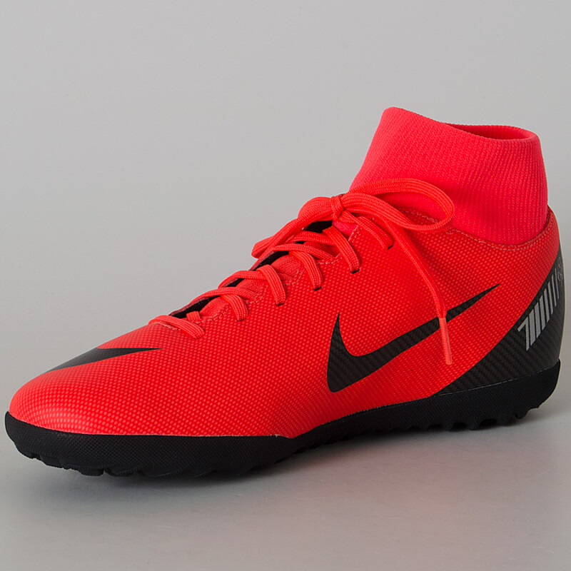 A Chuteira Society Nike CR7 MercurialX Superfly 6 Club TF proporciona excelente toque de bola e um ajuste confortável e seguro que promove a aceleração e permite rápida mudança de direção em campo.