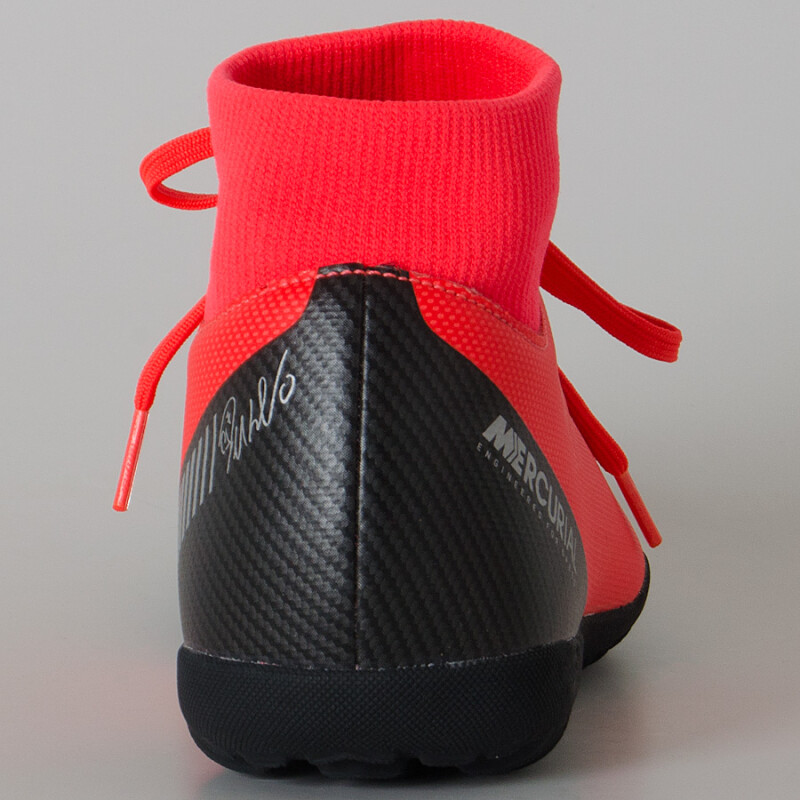 Com solado e travas baixas em borracha, a Chuteira Nike CR7 MercurialX Superfly 6 Club TF proporciona maior tração e agilidade dentro das quadras sintéticas.