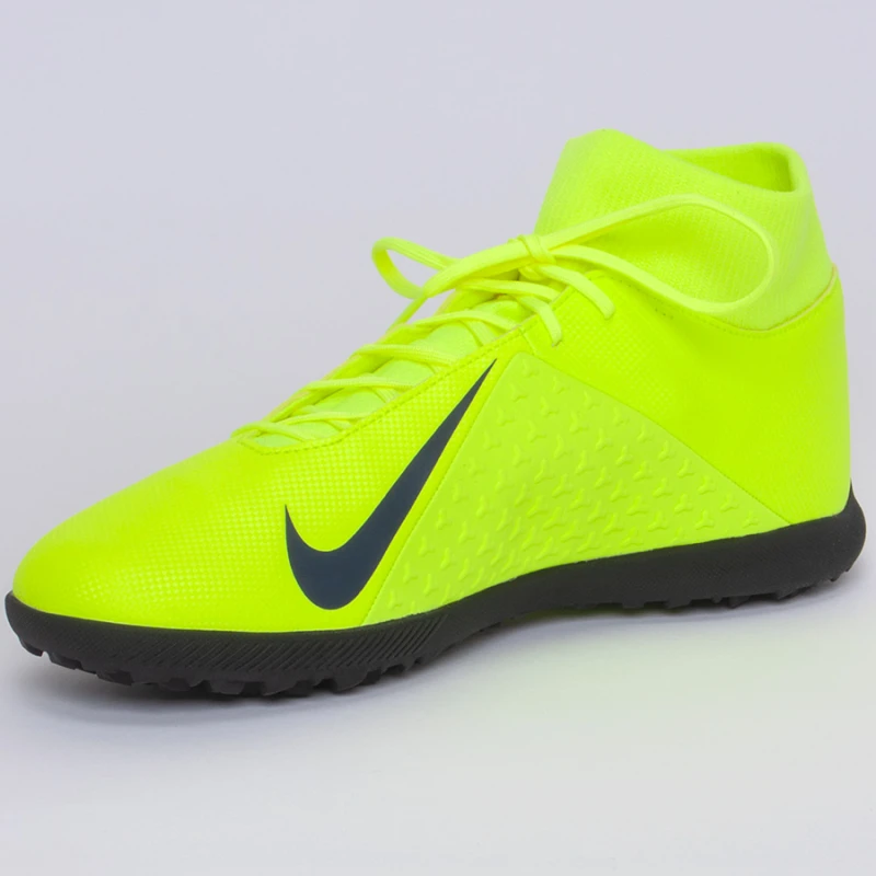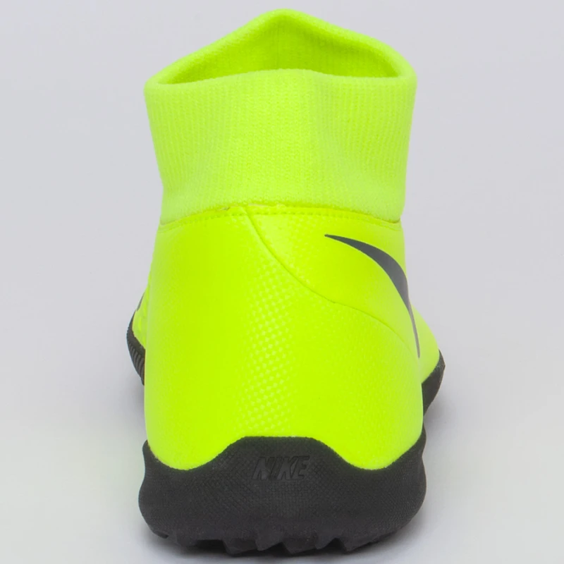 A Chuteira Society Nike Phantom Vision Club Dynamic Fit TF proporciona um ajuste firme e confortável, com camada interna, que abraça o seu pé e colarinho como o de uma meia ao redor do seu tornozelo.