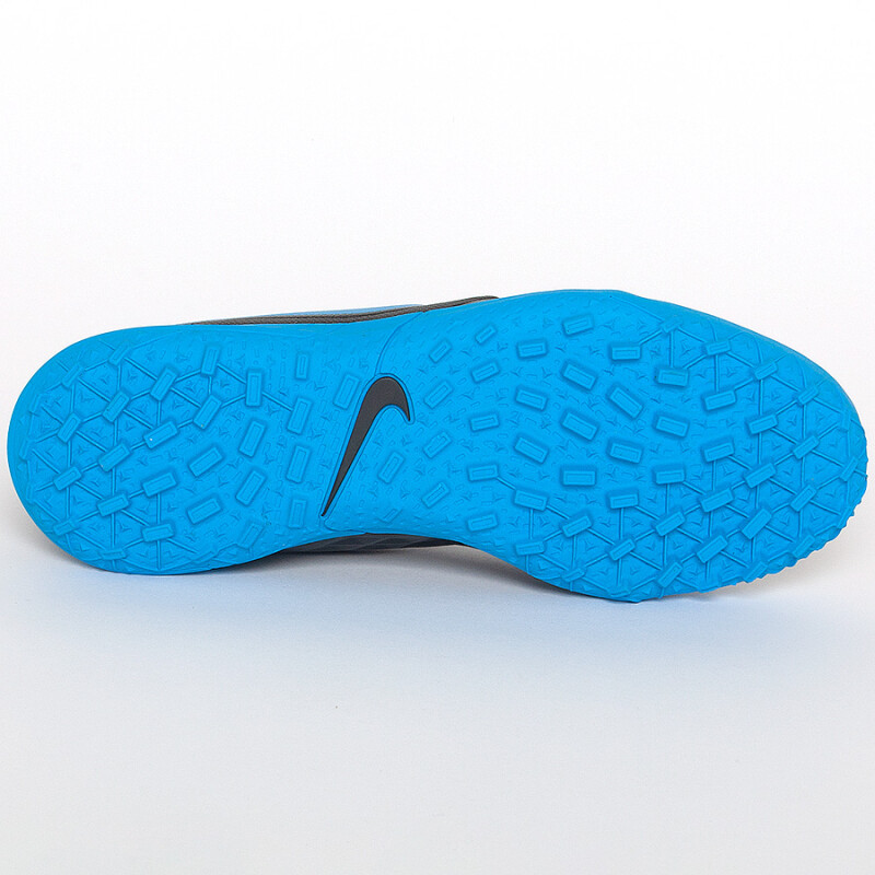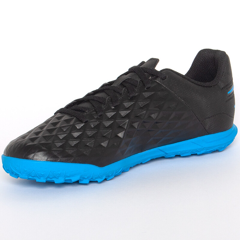 O solado com tachas de borracha garante tração multidirecional em superfícies sintéticas.