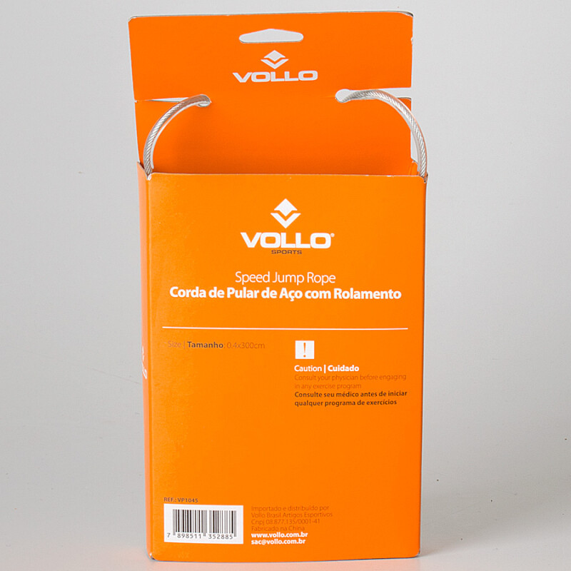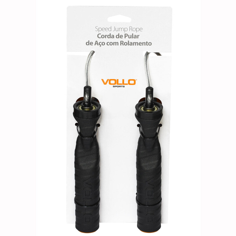A Corda de Pular Vollo Aço Crossfit COM Rolamento possui empunhaduras ergonômicas com rolamentos que proporcionam maior velocidade e durabilidade.