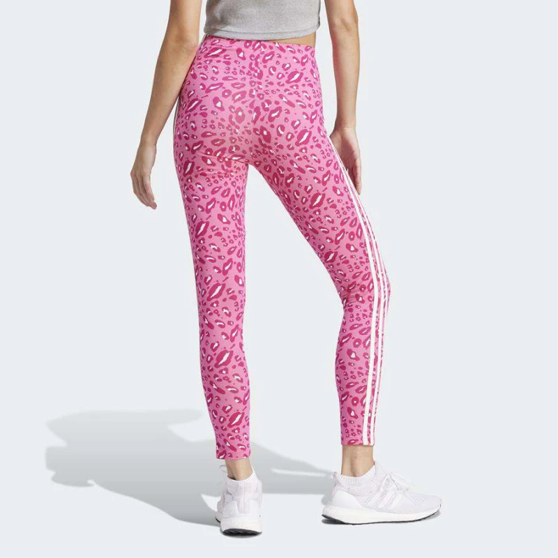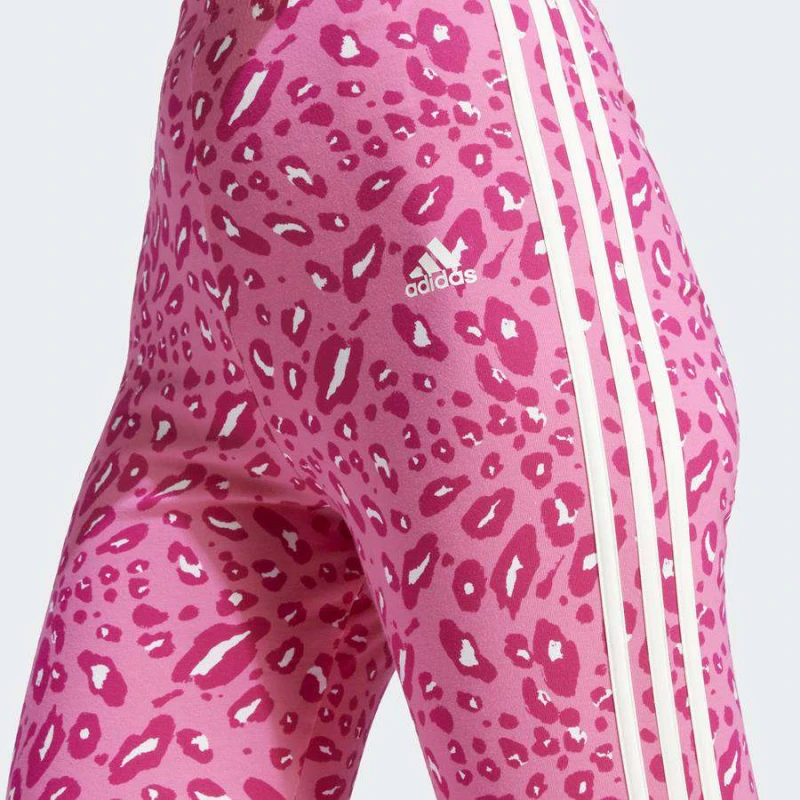 CALÇA LEGGING ADIDAS ESSENTIALS 3-STRIPES ANIMAL PRINT FEMININA - Rosa/bege
