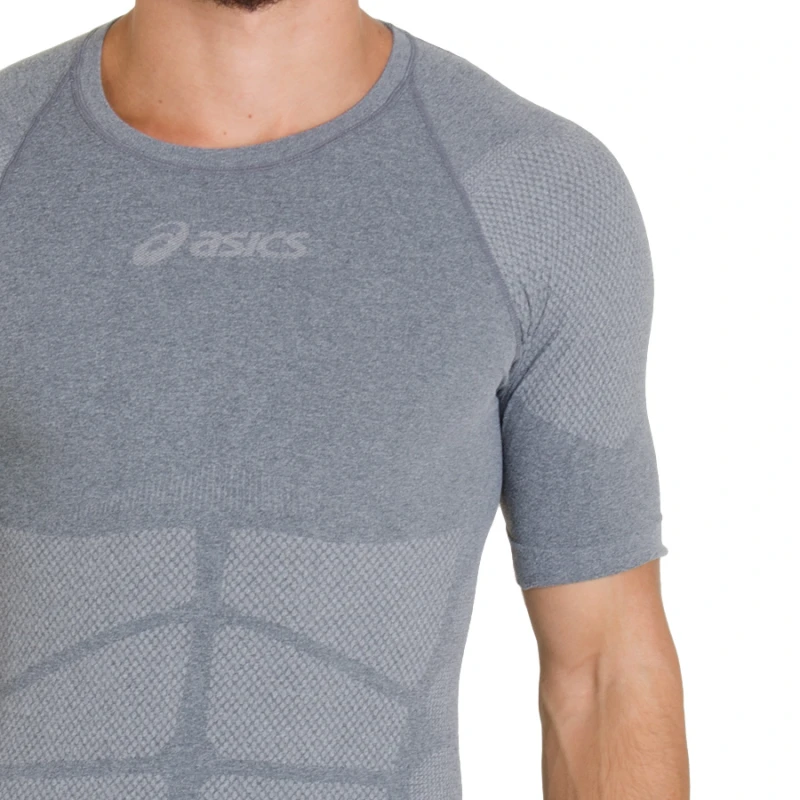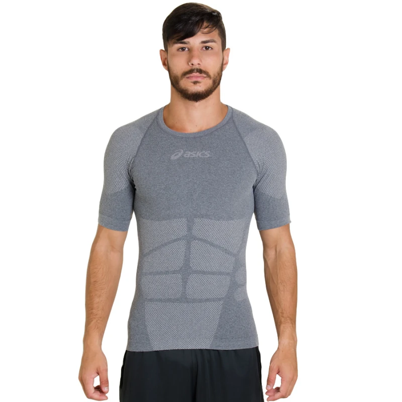 A Camiseta Asics Seamless SS Compressão Masculina com padronagem geométrica localizada e da marca na altura do tórax, é ideal para a prática de esporte onde necessite compressão aos músculos.