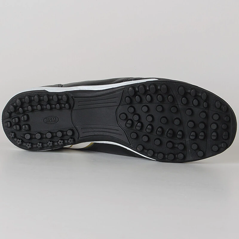 Seu solado é todo blaqueado, ou seja, colado e costurado, o que aumenta sua durabilidade, além de travas que permite maior agilidade e controle nos movimentos.