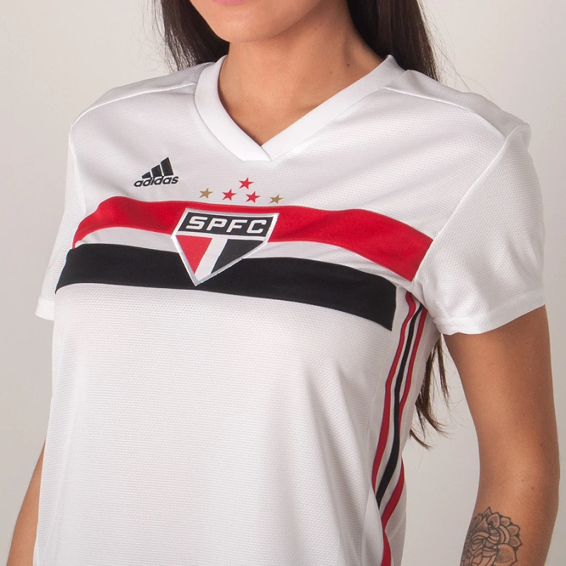 Os anos 1990 influenciaram o design da Camisa adidas São Paulo Oficial 1 2019 Sem Número Feminina.