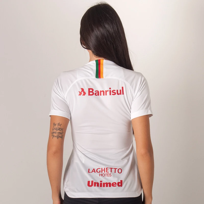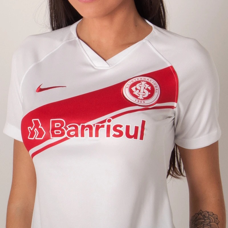 A Camisa Nike Internacional Oficial 2 2019 Sem Número Feminina segue a modelagem do uniforme principal.