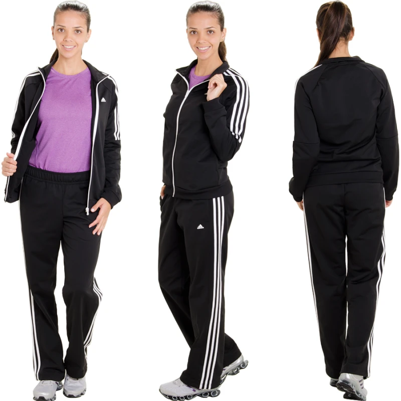 Medidas da modelo Tayse que veste o Agasalho adidas Frieda Feminino nas cores: Preto/Branco e Roxo/Preto no tamanho: P