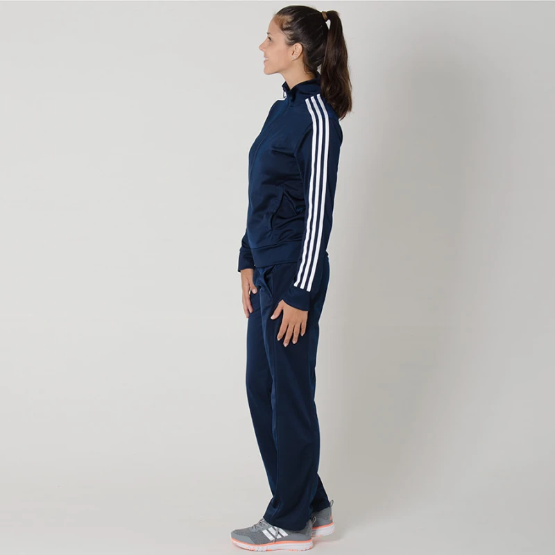 Medidas da modelo Tayse que veste o Agasalho adidas KN TS 1 Feminino nas cores: Preto/Branco, Marinho/Branco, Azul Celeste/Preto, Pink/Preto e Rosa/Grafite no tamanho: P