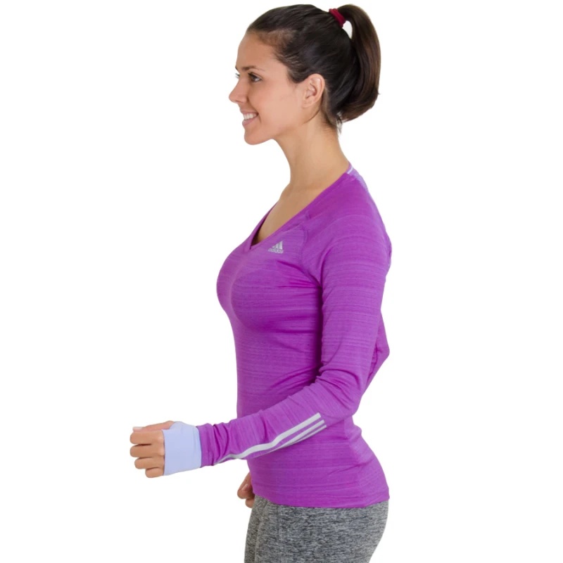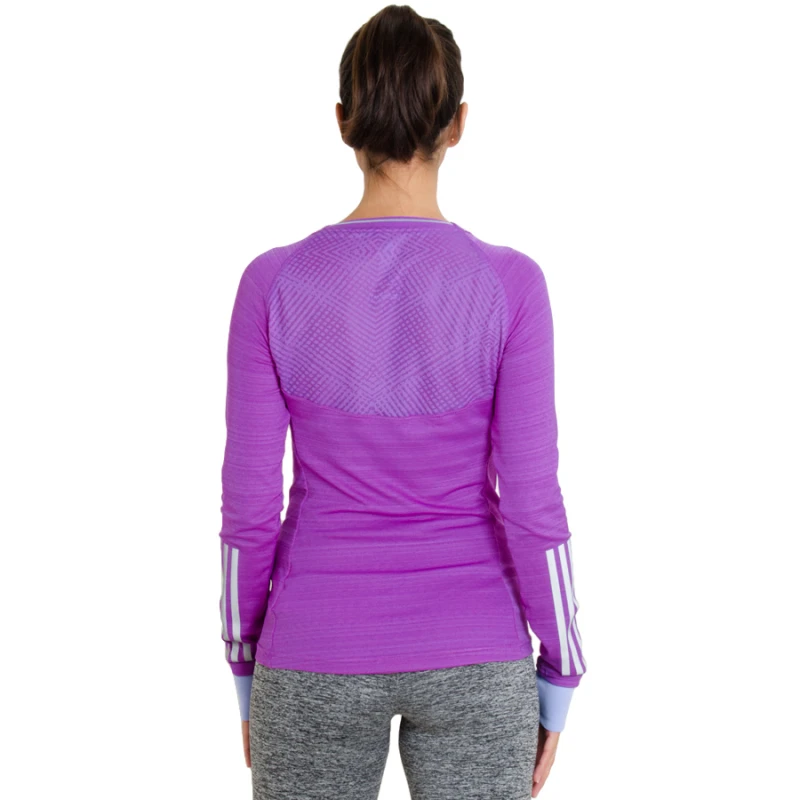 A Camiseta adidas Supernova Manga Longa é perfeita para as atletas que querem ter mais conforto durante as corridas nos dias mais frios. Confeccionada em poliéster, possui tecnologias que ajudam a manter a temperatura corporal e a chegar mais longe.Medidas da modelo Tayse que veste a Camiseta adidas Supernova Manga Longa na cor: Roxo/Prata no tamanho: PAltura: 1,74 m | Peso: 57 kg | Quadril: 93 cm | Busto: 87 cm | Manequim: 38 | Tamanho: M Dimensões aproximadas do produto: Largura x Altura em cmP: 42 x 62 | M: 44 x 64 | G: 46 x 66 | GG: 48 x 68Especificações:Referência do fornecedor na cor:Roxo/Prata: S16200