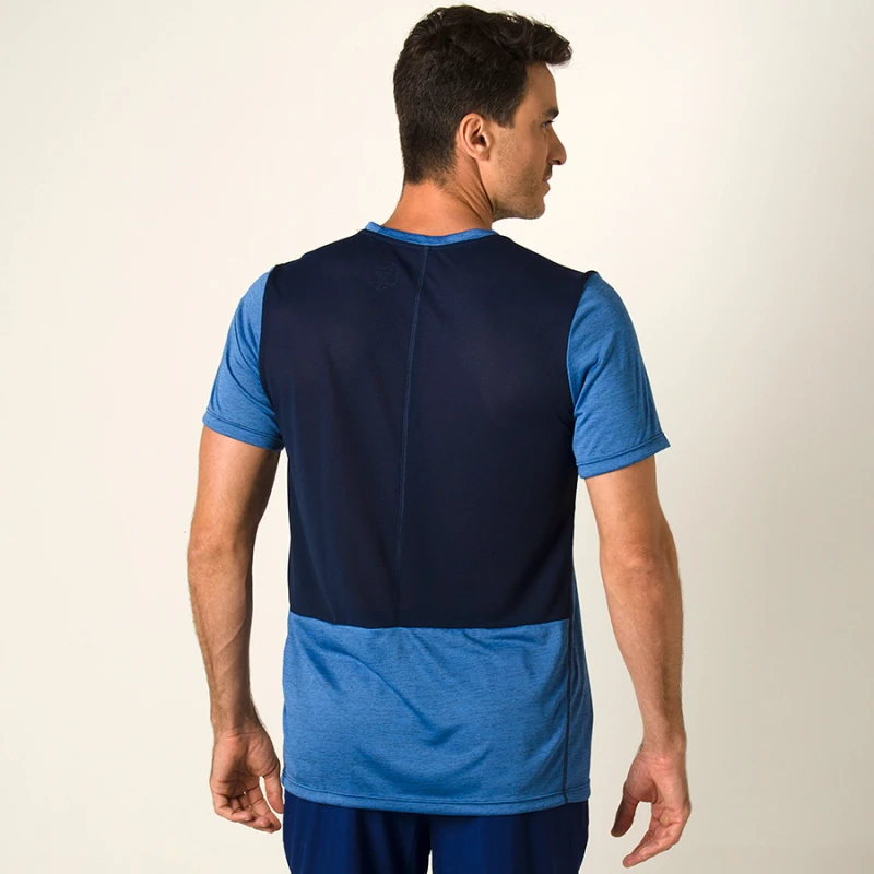 Confeccionada em poliéster, tecido leve e macio, conta ainda com recorte em tecido de trama mais aberta na região dos ombros e parte das costas.