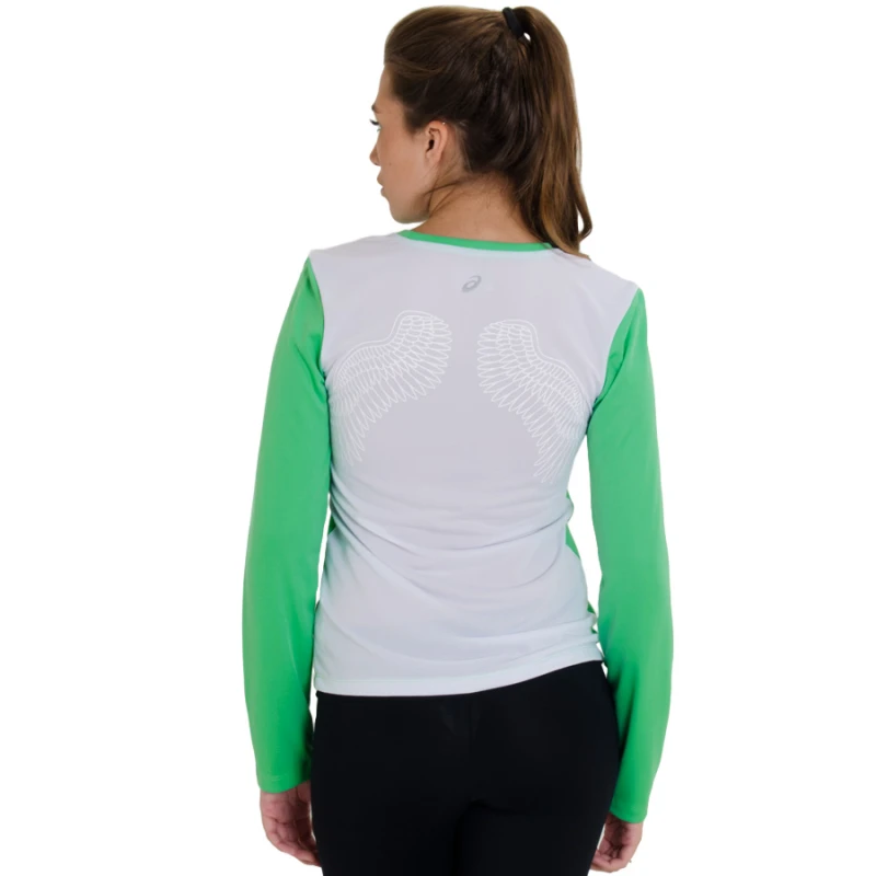 CAMISETA ASICS SPORTS MESH LS MANGA LONGA FEMININA - Verde/branco