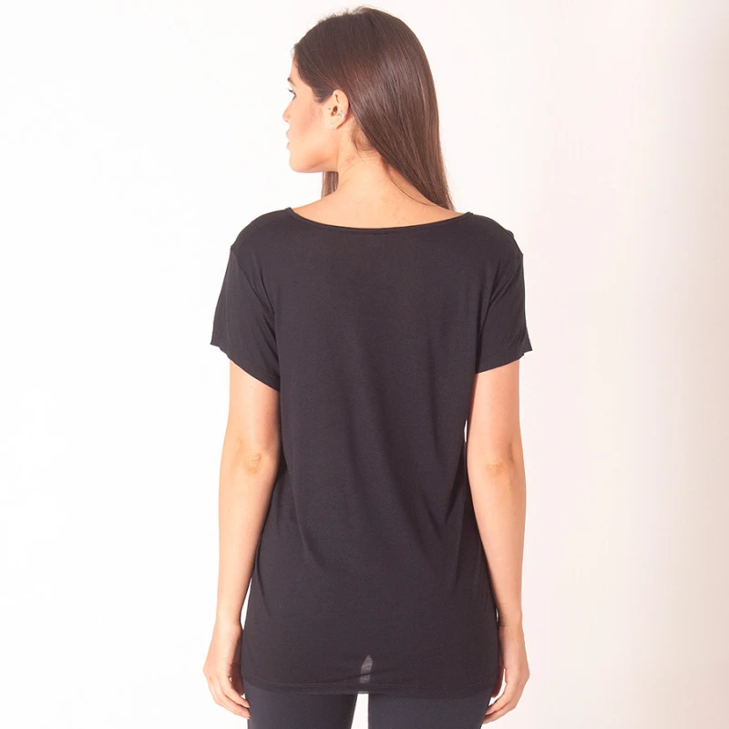 A Camiseta Colcci Estampada Preta Feminina é perfeita para você arrasar nos treinos dentro e fora da academia.