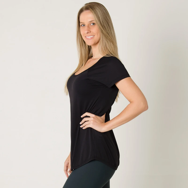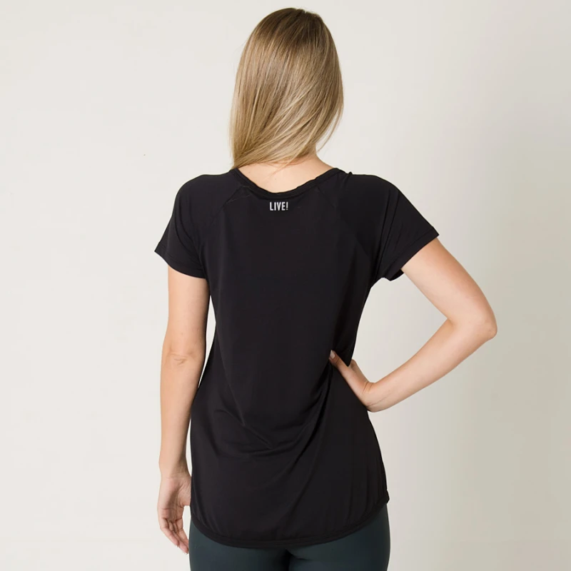 Indicada para prática esportiva intensidade leve à pesada, a Camiseta Live Comfy Basic Feminina é levemente comprida com gola mais aberta e cava raglã.