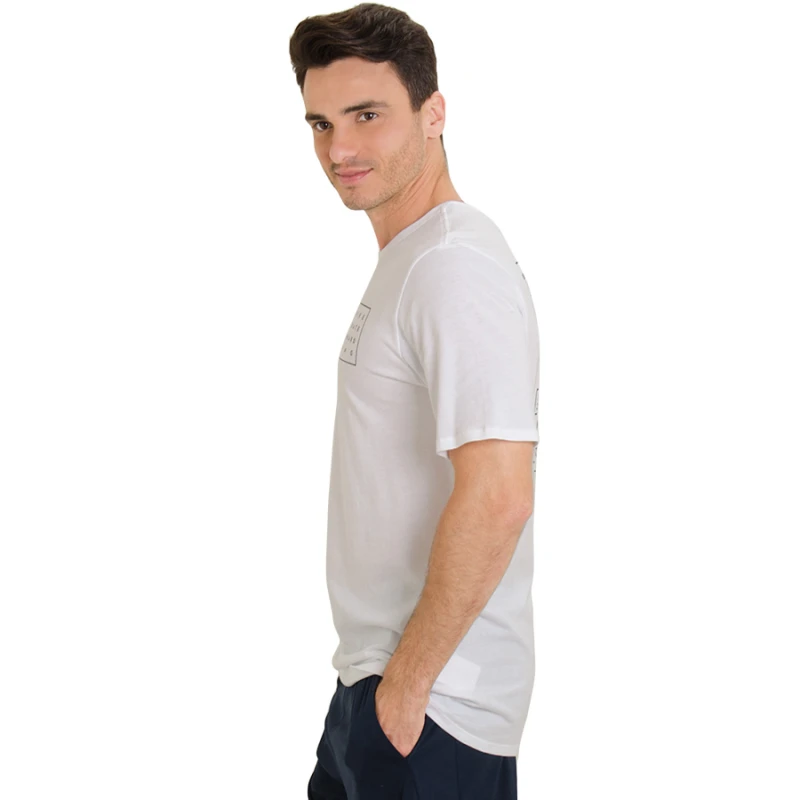 Medidas do modelo Julian que veste a Camiseta Nike SB Boxes TEE nas cores: Preto/Branco, Branco/Preto e Cinza/Branco no tamanho: M