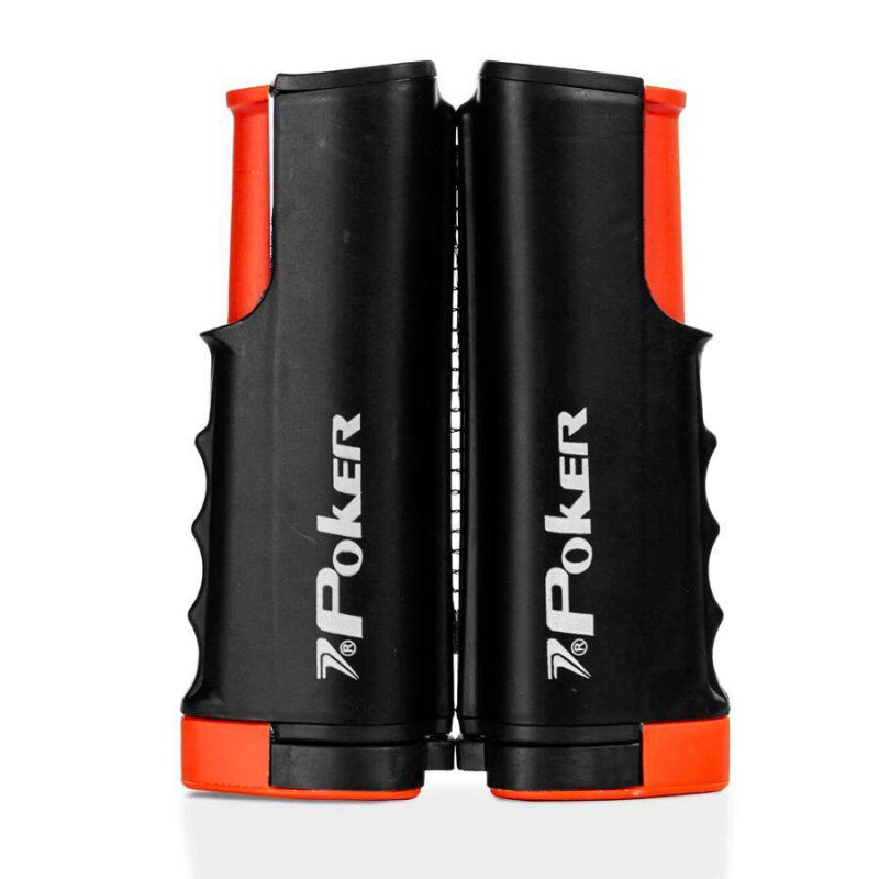 As 2 raquetes de tênis de mesa são em madeira, e com os dois lados em borracha lisa e espuma, o suporte retrátil vem com rede interna que facilita a montagem em segundos, basta apertar o suporte contra a mesa que libera a rede para o comprimento desejável. Permitindo que a diversão comece em segundos.