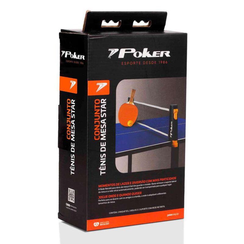 O conjunto de Tênis de Mesa Star, traz a facilidade e praticidade para praticar o tênis de mesa em qualquer ambiente:  Contém 2 Raquetes, 3 Bolas e Suporte com rede retrátil.