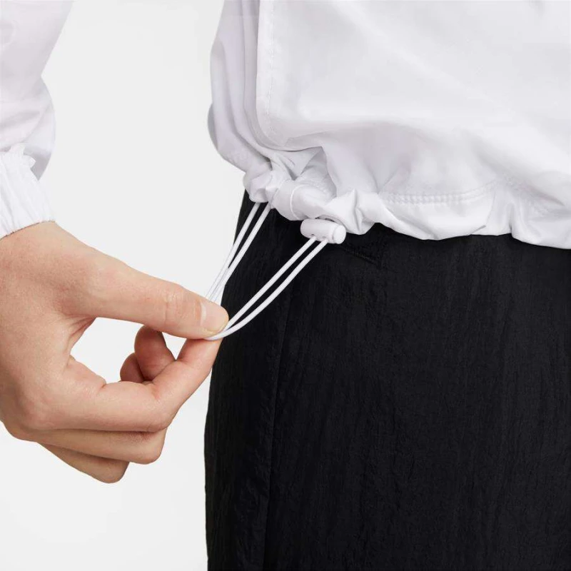 Os punhos elásticos mantêm as mangas no lugar, enquanto os cordões elásticos na bainha permitem que você personalize seu estilo e ajuste.