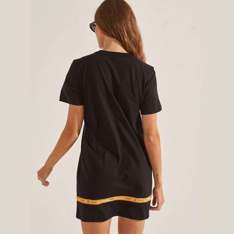 Vestido camiseta apresenta shape retoe modelagem comfy.