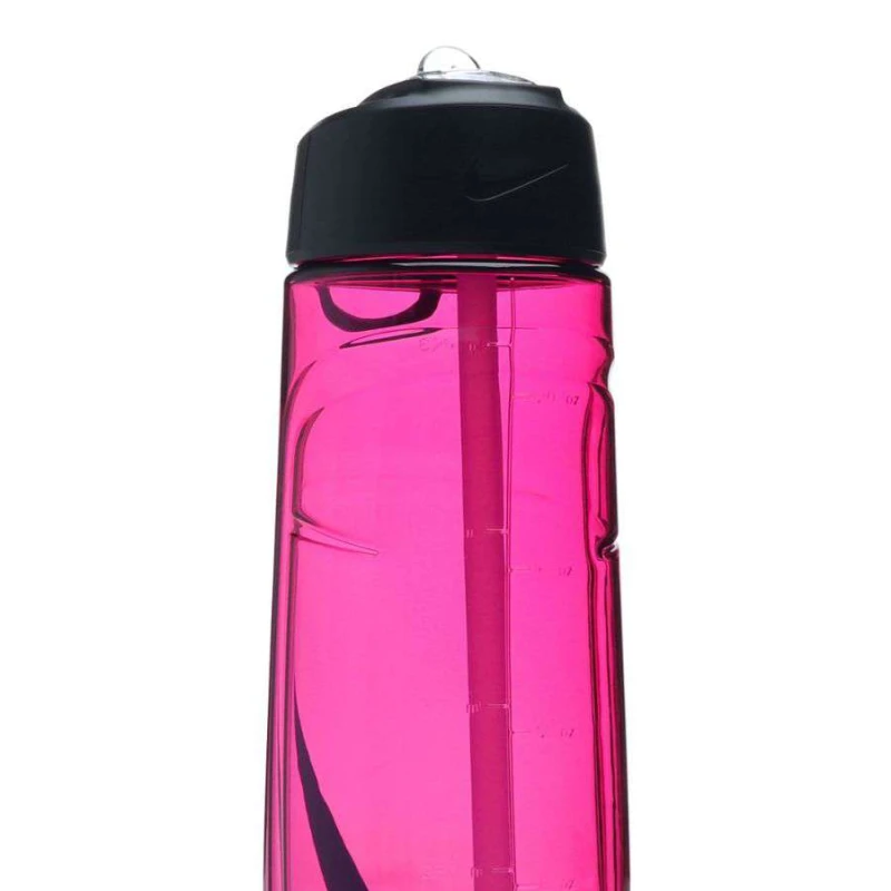 Detalhamento: Garrafa feita com um material resistente e seguro para o uso, totalmente livre de Bisfenol-A. Possui baixa retenção de odores e sabores, é resistente a altas temperaturas e ao choque térmico. Tampa rosqueável e vedação em borracha, com um bico móvel (Flip) que se liga a um canudo interno, facilitando o consumo da bebida até o final. Swoosh estampado em cor contrastante. Capacidade de 709ml com marcação de mililitros (até 625ml) e Oz (até 20oz) em alto relevo. Alça móvel e rígida, tornando fácil de transportar;