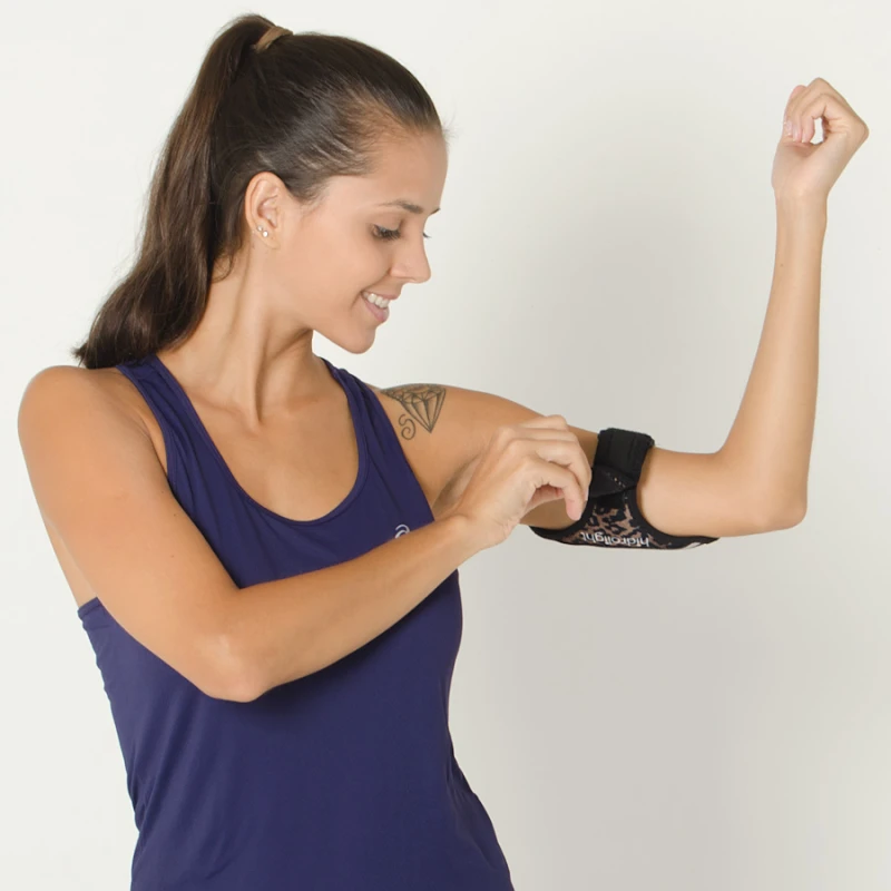 Possui uma faixa regulável que facilita o ajuste do produto no braço.