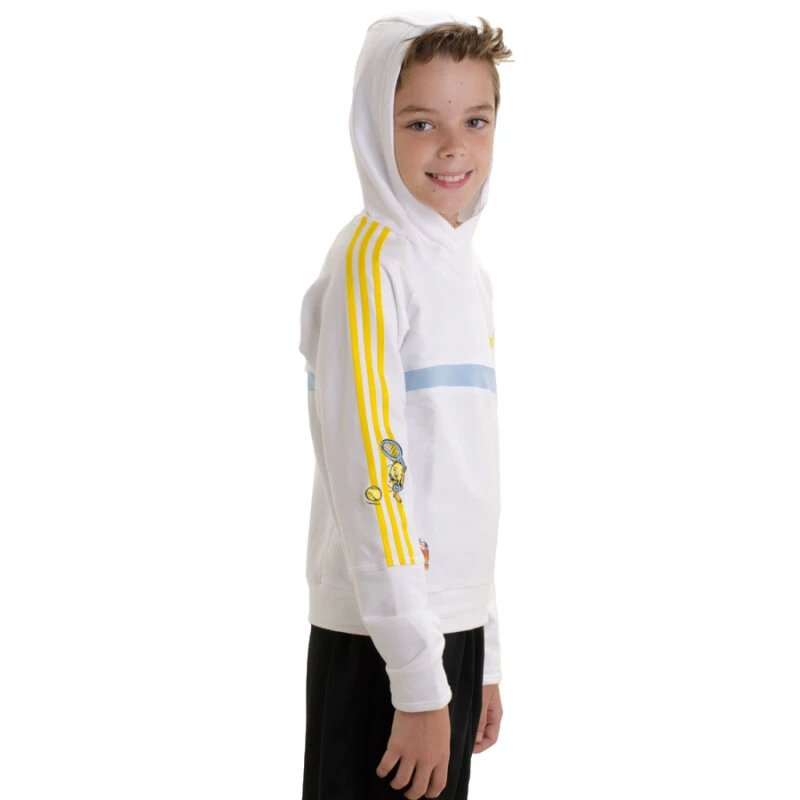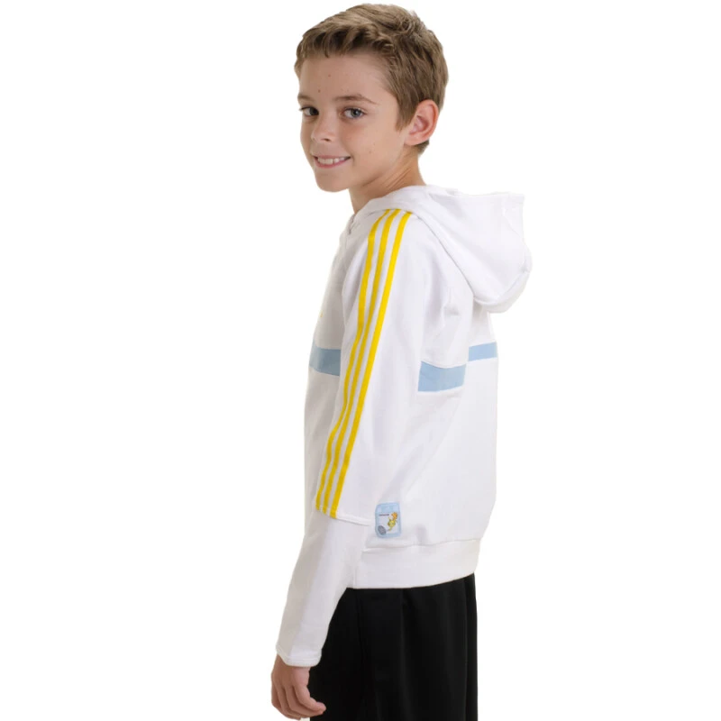 O Blusão Adidas Infantil garante ao seu pequeno proteção contra o frio e um visual alegre e descontraído, perfeito para incrementar seus looks.