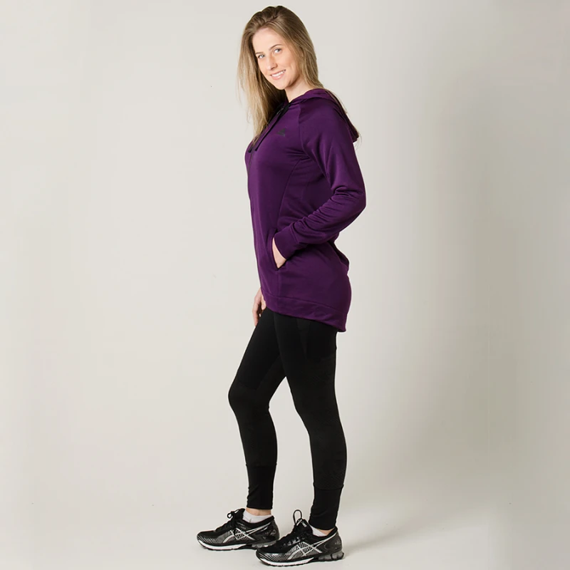 Superconfortável, a jaqueta é confeccionada em moletinho 100% poliéster, tem corte longo, com barra traseira maior para cobrir mais, bolsos laterais abertos, fecho de zíper, capuz e cordão de ajuste.