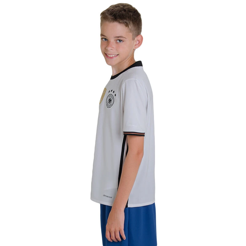 Com a Camisa adidas Alemanha Oficial 1 2016 Sem Número Infantil os pequenos torcem com conforto e estilo.
