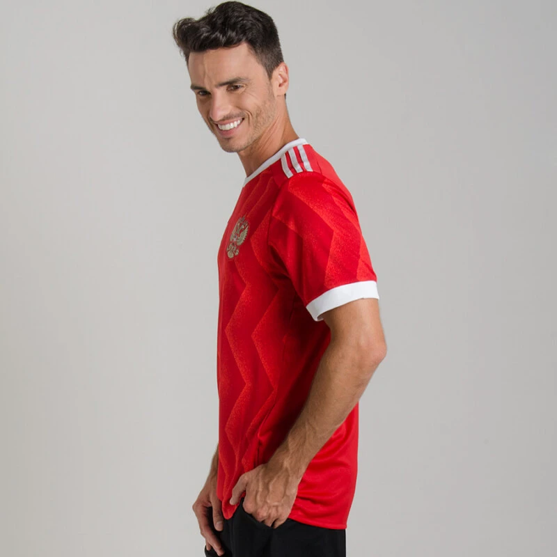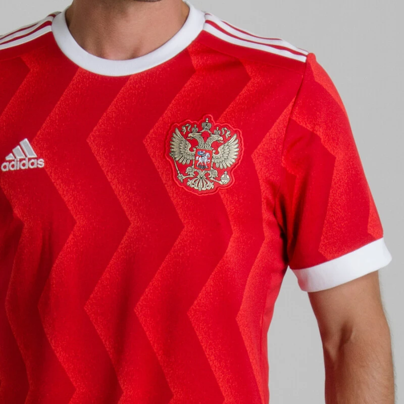 Além disso, a camisa leva o escudo da União de Futebol da Rússia costurado à esquerda do peito.