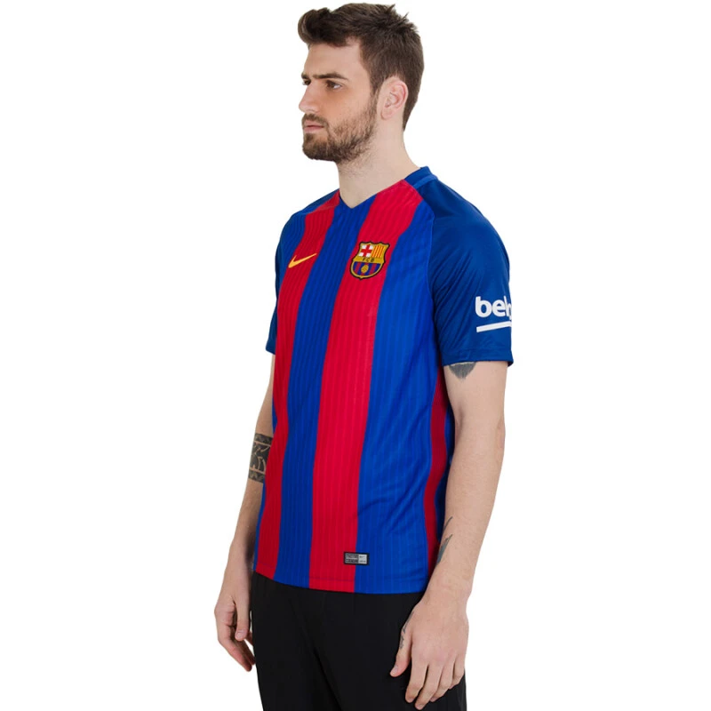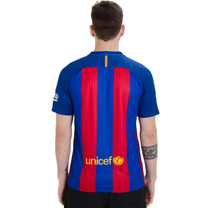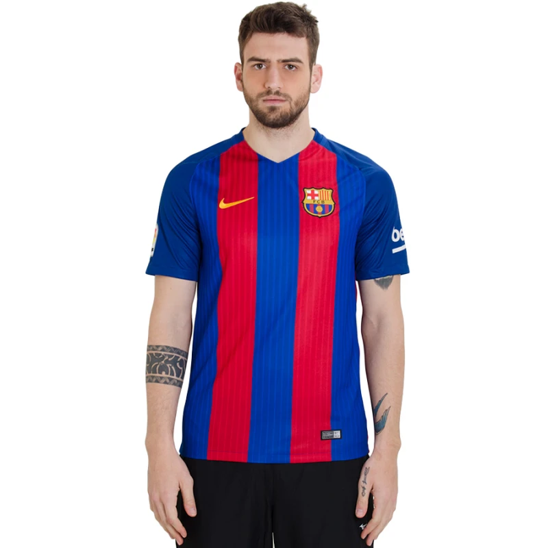A Camisa Nike Barcelona Oficial 1 2016/17 Sem Número confeccionada em 100% poliéster apresenta a tecnologia Dri-Fit, que auxilia na eliminação do suor, mantendo os torcedores leves e confortáveis nas arquibancadas torcendo pelo Barça.