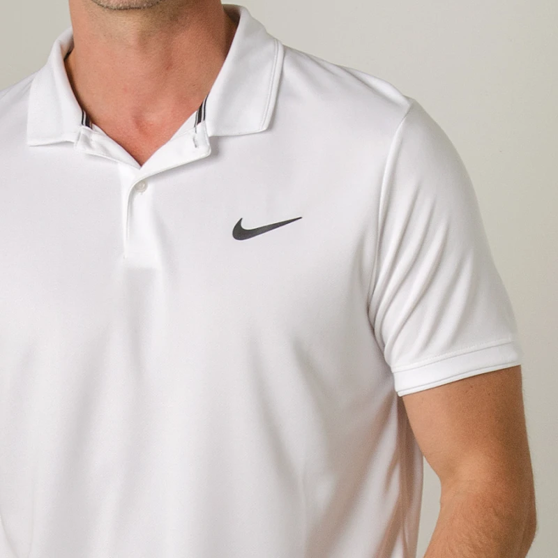 A Camisa Polo Nike Court Dry Masculina apresenta tecido que absorve o suor em um perfil clássico para conforto seco em quadra.