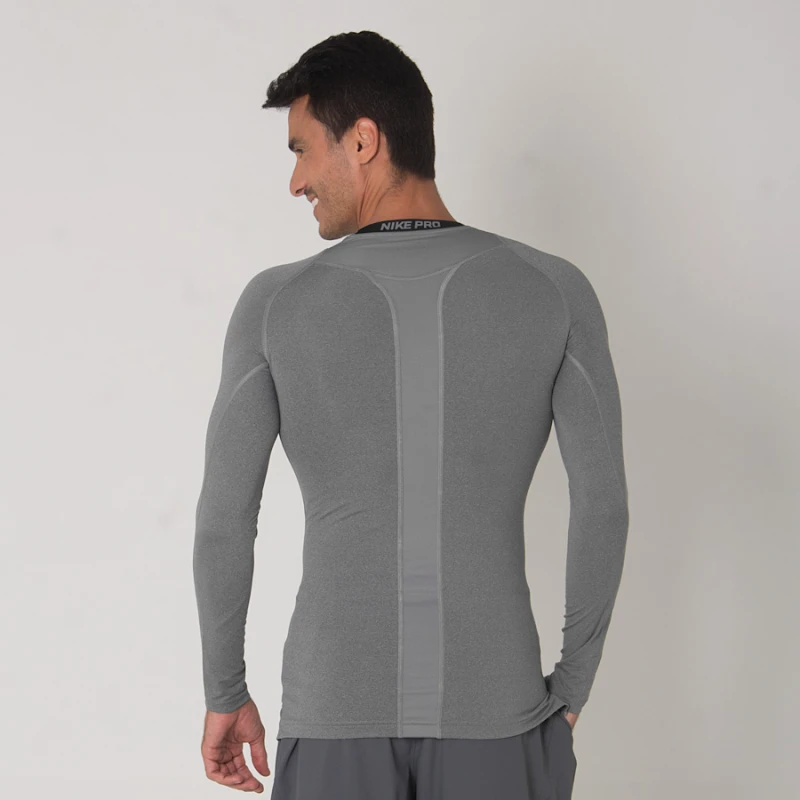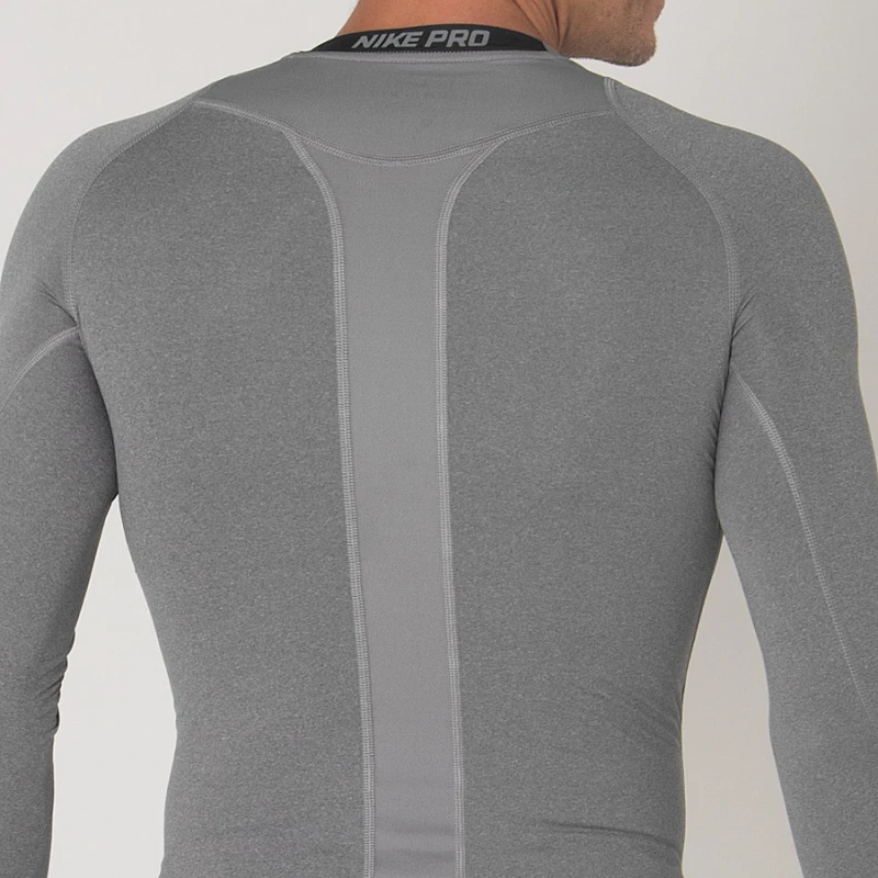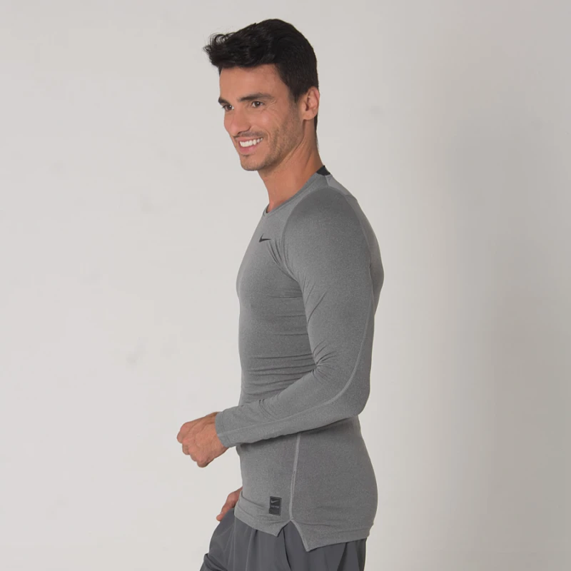A Camiseta Nike Pro Cool Combat Cool Compression Manga Longa Masculina é confeccionada em 92% poliéster e 8% elastano, com painel em mesh nas costas.