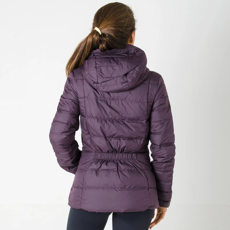 Possui capuz com painéis que proporcionam cobertura e painel elástico nas costas que cria um efeito enrugado e um ajuste elegante.