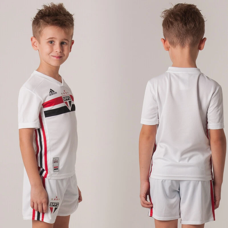 O Mini Kit adidas São Paulo Oficial 1 2019 Infantil inclui uma camisa e calção.