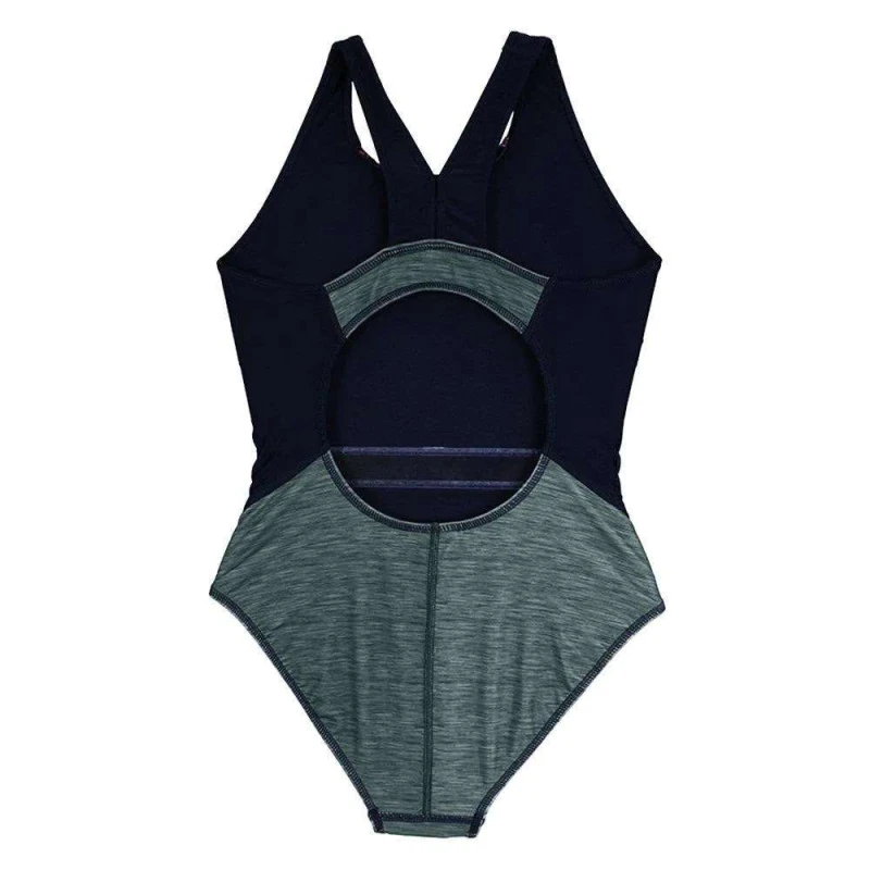Feito em Lycra, com estampa sublimada mescla, viés contrastante neon contornando a peça e costas Open com alça dupla.