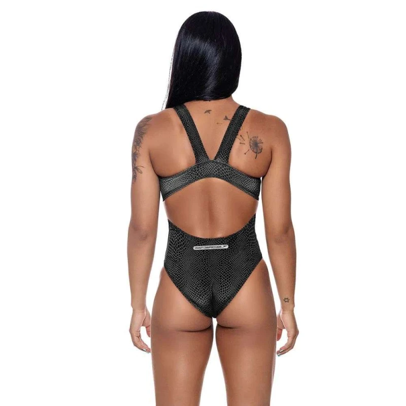 O Maiô Snake Speedo traz o tecido tecnológico Smart Compression, que possui menor arrasto e maior deslize, em estampa animal print de couro de cobra, luxo absoluto, com modelagem que valoriza o corpo, realçando as curvas femininas.