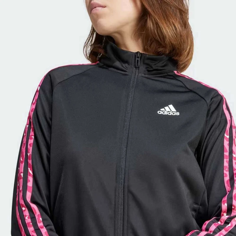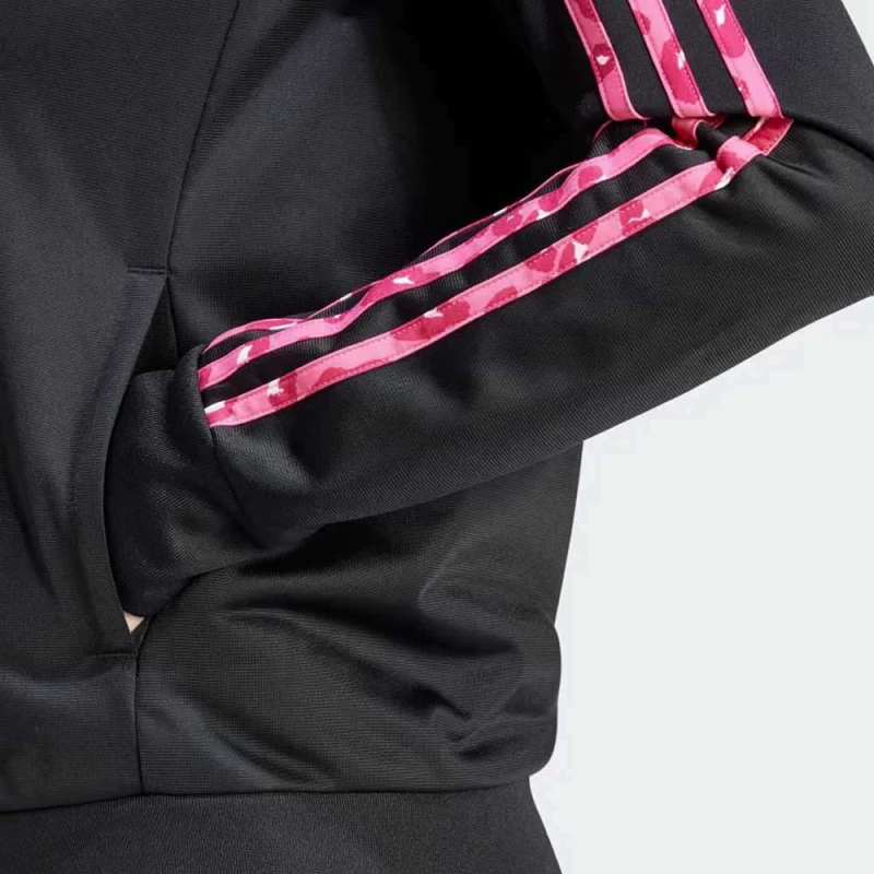 JAQUETA ADIDAS MALHA ESTAMPA ANIMAL ESSENTIALS TRÊS LISTRAS FEMININA - Preto/rosa