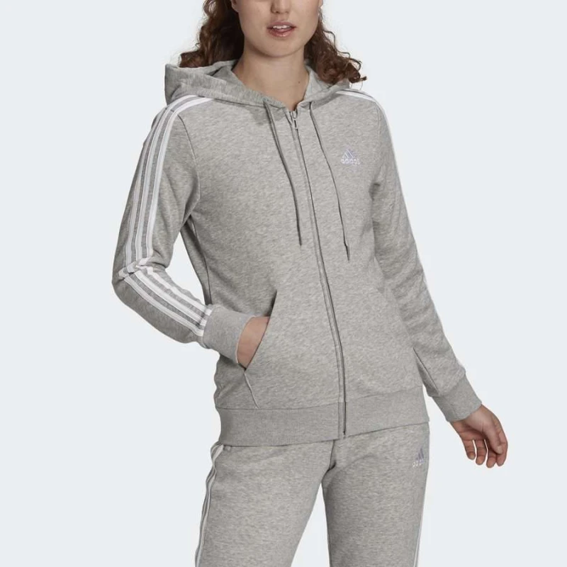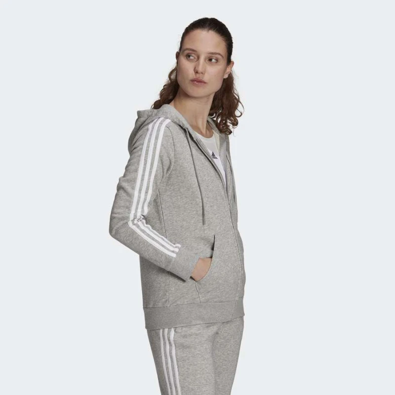 JAQUETA ADIDAS MOLETOM 3 LISTRAS FEMININA - Cinza