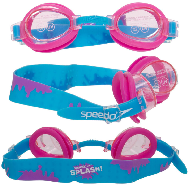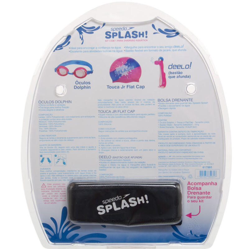 Kit Speedo Natação Splash infantil vem composto por touca, bastão, óculos e bolsa drenante.