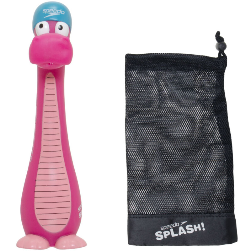 Bolsa drenante para guardar o kit e facilitar o escoamento da água e bastão Deelo, personagem exclusivo Speedo, para divertir e auxiliar no desenvolvimento lúdico da natação aos pequenos peixinhos.