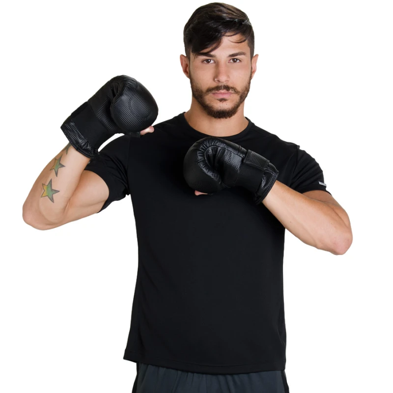 Medidas do modelo Juliano que usa a Luva Mks Bate Saco Super Fist nas cores: Preto e Vermelho