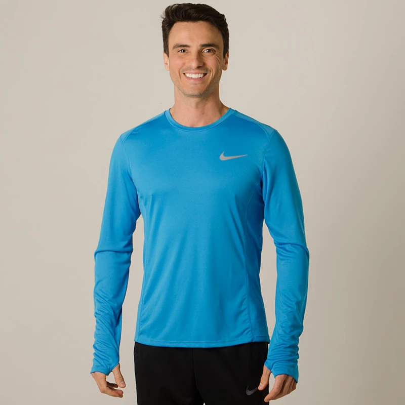 A Camiseta Nike Dry Miler Running Top Manga Longa Masculina vem confeccionada em 100% poliéster, tecido leve e confortável.