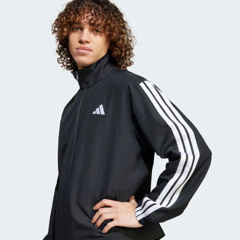 Este agasalho adidas está pronto para tudo, seja para relaxar ou para sair por aí. A jaqueta com fecho de zíper tem gola alta. Feito de malha macia, ele se destaca com as Três Listras clássicas.