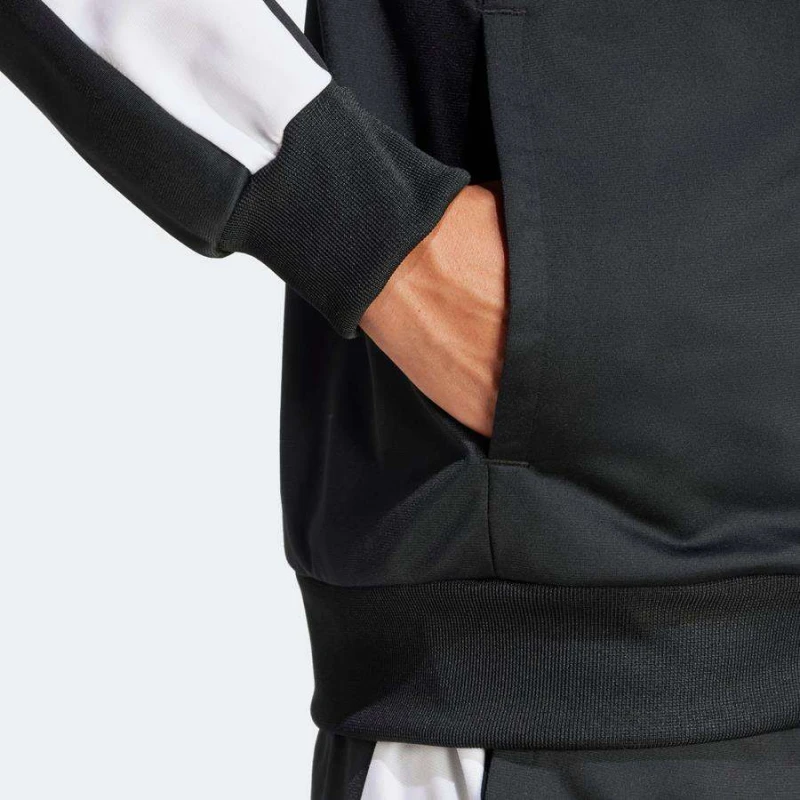 Seja para ir à academia ou apenas relaxar, este agasalho adidas é a companhia perfeita. A estrutura em malha macia e o design clássico em cores contrastantes mantêm você confortável. Os punhos canelados proporcionam um ajuste firme enquanto você se movimenta, e os bolsos oferecem espaço para itens essenciais. O logo bordado no peito e na perna dá o toque esportivo icônico.
