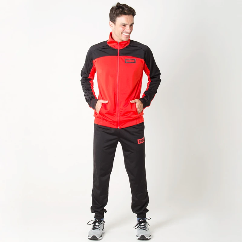 Medidas do modelo Julian que veste o Agasalho Puma Graphic Rebel Tricot Suit Masculino nas cores: Preto/Branco e Vermelho/Preto no tamanho: M