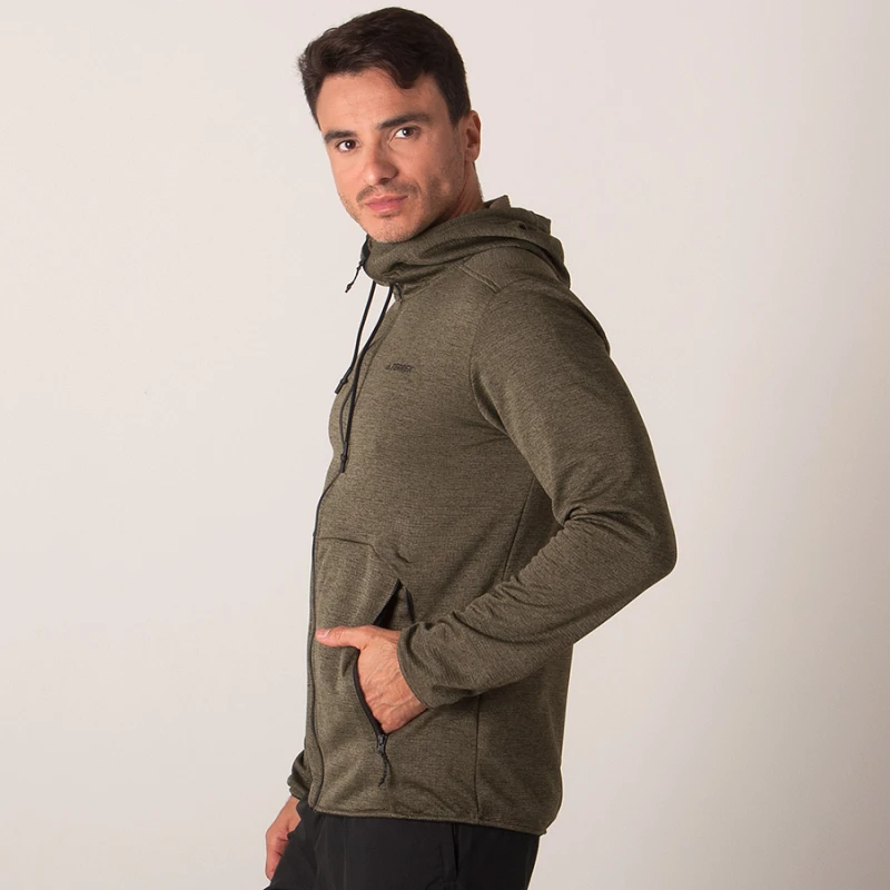 A peça traz dois bolsos laterais com zíper que mantêm o básico ao seu alcance e o capuz aquece mais quando você precisa.