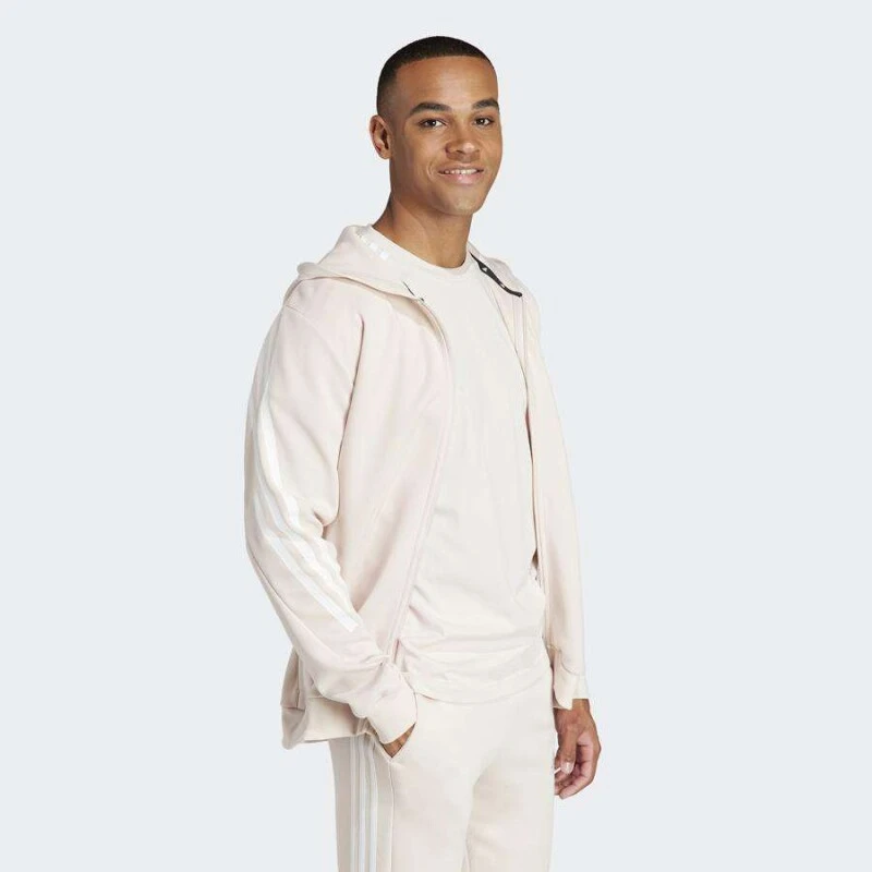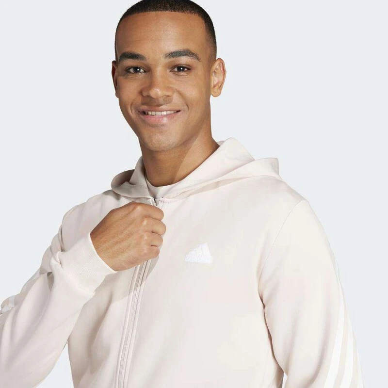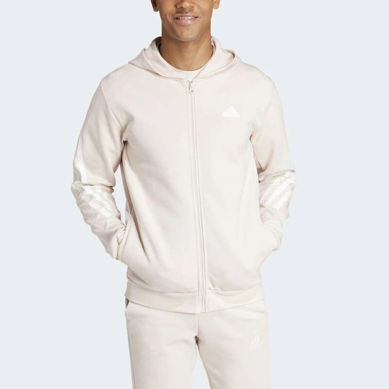 JAQUETA ADIDAS MOLETOM CAPUZ E COM ZÍPER COMPLETO FUTURE ICONS 3 LISTRAS MASCULINA - Rosa