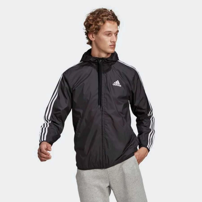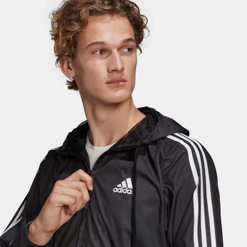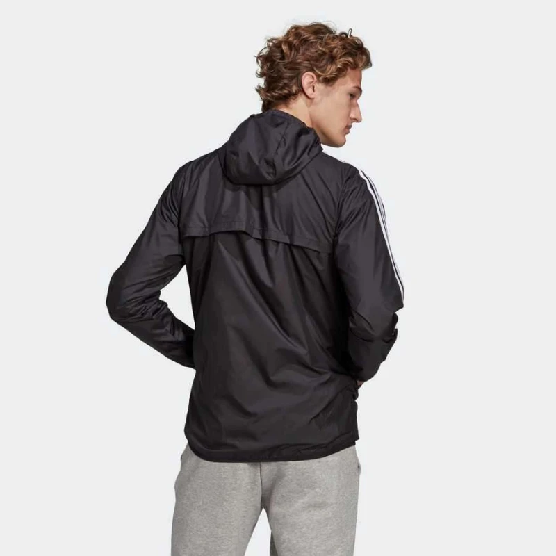 JAQUETA ADIDAS CORTA-VENTO PRIMEGREEN ESSENTIALS 3-STRIPES MASCULINA - Preto/branco
