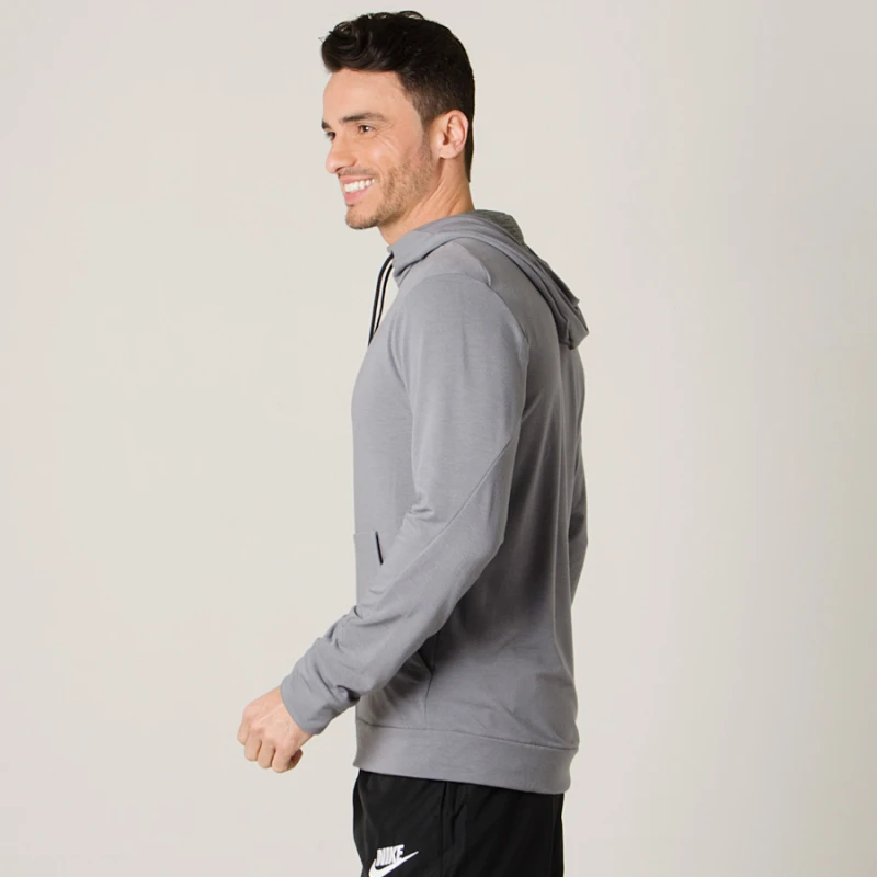 Além disso, possui bolso em estilo canguru, fechamento em zíper e capuz com cordão para ajuste.