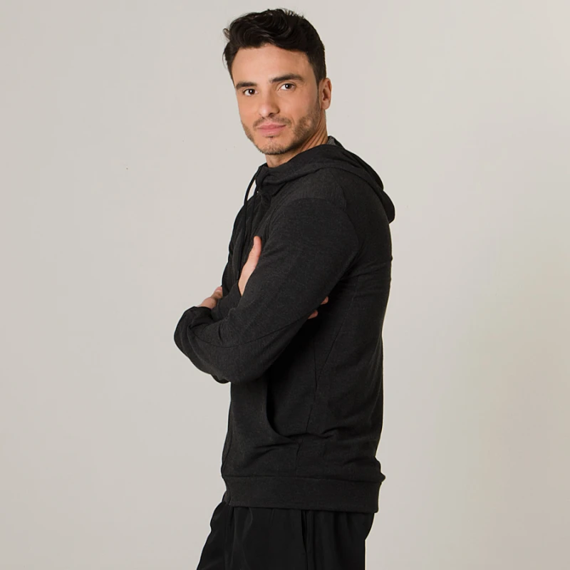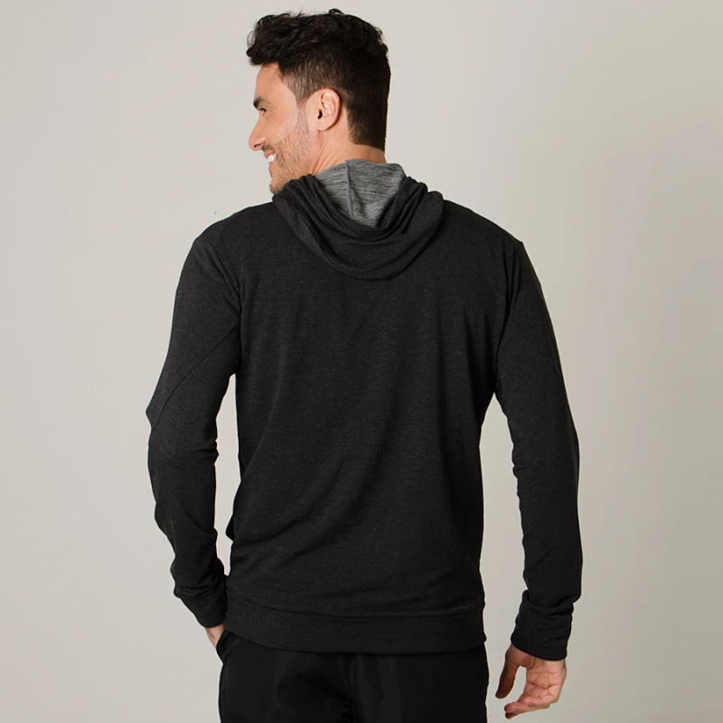 Além disso, possui bolso em estilo canguru, fechamento em zíper e capuz com cordão para ajuste.